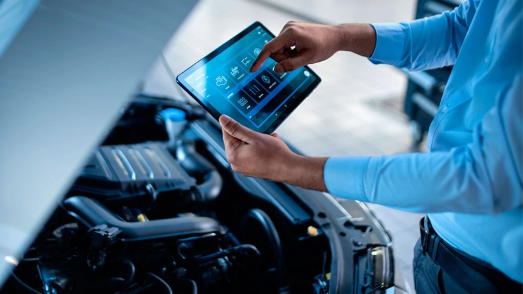 Este proceso implica conectar una máquina de diagnosis al vehículo a través del puerto OBD-II para leer códigos de error y analizar datos del motor y otros sistemas, identificando fallas o problemas potenciales.